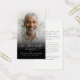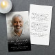 Keep the memory of a loved one close with this personalized prayer card featuring one beloved photo, the sentiment IN LOVING MEMORY OF NAME, dates and an editable heartfelt remembrance message you can change to a meaningful poem or bible verse. With its simple black and white design and modern script typography, it makes a cherished keepsake to share at a funeral, memorial service, visitation, wake or Celebration of Life and offers comfort and a lasting tribute for family and friends. Its small and portable size of 3.5x2" (wallet-sized) makes it convenient for loved ones to carry it with them as a reminder of your loved one’s life and spirit. Personalization makes each card unique.