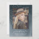 Convite para festa de formatura de fotos moderno e chic apresentando sua foto de mais velho de formando com uma fonte elegante de script e um confete de folha de ouro falso contra um fundo de cor azul-d-água marinho. Personalize o convite com seu ano de formando, nome e escola na frente. Adicione seus detalhes de festa de formatura no verso.