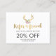 Coordena-se com os Barcos Dourados da Boêmia com Modelo de cartão de negócios de Flores até 1201AM. Uma ilustração dos veados em ouro metálico falso é combinada com um buquê de flores para fornecer uma estética boêmica sobre este cartão de promoção que faz referência a um amigo. Esta placa de lado duplo permite um amplo espaço na parte traseira para suas informações de contato. Excelente de boutiques e salões para encorajar negócios de remessa. Atualize a promoção para sua própria oferta exclusiva. Este design faz parte de uma série de material de escritório para ajudar a marca da sua empresa. Arte original e design © 1201AM CREATIVE / www.1201am.com