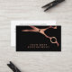 Cartão de Compromisso de Salão de Cabelos com Tesoura de Cobre Preto de Barbearia. Esta coleção foi projetada para fornecer as ferramentas necessárias para iniciar seu negócio, inclui itens com fundo preto e tesoura de cobre. Com uma lista de serviços, sinal de boas-vindas, cartão de indicação e mais itens correspondentes, este pacote inclui tudo o que você precisa para atrair novos clientes e recompensar os leais.