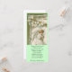 Reprodução em vintage de um cartão sagrado de Páscoa com fitas, lírios e um anjo ajoelhado enquanto reza.