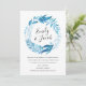 Nosso convite de casamento do Indigo Leaves mostra seus nomes em uma fonte elegante de caligrafia cercada por uma coroa de folhagem de aquarela em tons vibrantes de índigo e azul-lacaio com seus detalhes de casamento abaixo. Os convites de casamento botânico na moda são perfeitos para casamentos de primavera e verão.