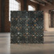 This ceramic tile features a complex, layered geometric pattern inspired by Moorish, Moroccan, or Islamic architectural motifs, rendered in a richly distressed and aged industrial metal finish in the colors of deep, dark gunmetal or oxidized iron. The design showcases a repeating lattice of intricate, interlocking octagons and diamonds, overlaid with a clean, light metallic framework that suggests forged iron or riveted metal plating. Bring unique depth and visual interest to backsplashes, accent walls, floors, and custom home projects in steampunk, industrial, bohemian, or urban-eclectic style. Search ID1227 to see other metallic geometric designs in this series. Note: design adapted from generative content.