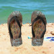 Um par de chinelos castanhos, laranja e azuis em um padrão natural selvagem. Qualquer estilo para crianças, crianças ou adultos, este design unisexo é perfeito para a próxima aventura divertida. Estes chinelos podem ser personalizados com um Nome ou Iniciais para um calçado verdadeiramente único.