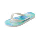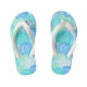 Chinelos para crianças perfeitos para toda a sua diversão de verão, mostrados aqui em branco com um impressão colorido de cores azuis e verdes. Personalize este item ou comprar como está. Imagem do stock