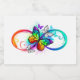Multicor, brilho, símbolo de infinidade com arco-íris, monarca de borboleta detalhada. Borboleta-arco-íris. Arco-íris infinito.
