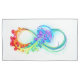 Símbolo multicolorido infinito com águas-vivas brilhantes do arco-íris decoradas com tentáculos longos em fundo branco. Água-viva arco-íris.