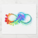 Símbolo multicolorido infinito com águas-vivas brilhantes do arco-íris decoradas com tentáculos longos em fundo branco. Água-viva arco-íris.