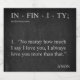 Com estilo inegável e legal, esta única INFINIDADE - AMA VOCÊ MAIS Dia de os namorados A etiqueta de garrafa é perfeita para destacar o chic do seu dom engarrafado de Dia de os namorados de amor!!! Legal dizendo definição de dicionário: INFINITY "Não importa o quanto eu diga que te amo, eu sempre te amo mais do que isso"! Com o Dicionário INFINITY, a definição e o padrão do quadro serão perfeitos com o presente de Dia de os namorados de vinho espumante para mulheres do seu coração ou para realçar o amor na sua noite romântica dando presente engarrafado para ele!