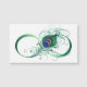 The symbol of infinity with a bright, green, artistic peacock feather on a white background. Tattoo style.