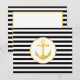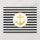 Cartão de compartimento de notas personalizado com faixas pretas e tema náutico de âncora dourada.