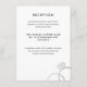 Um monograma moderno fica glamoroso com anéis de casamento de prata entrelaçados e um texto personalizado, tornando este um convite de casamento novo clássico com texto simplificado em preto e branco. Personalize todo o texto deste cartão de recepção de convite e ajude a direcionar seus convidados para um local secundário ou personalize-o para qualquer outra necessidade que você possa ter, como informações de hotel ou site.