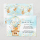 Lindos animais bebês aquarela passeio de balão de ar quente baby shower com um elefante, girafa, raposa e coelho para um chá de bebê menino. Vire nosso adorável cartão de trazer um livro para ver um verso coordenador para um toque especial.
