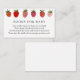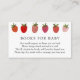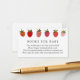 Um cartão de inserção de solicitação de livro para o chá de fraldas. Apresentando pequenos morangos bonitos e poema: "UMA PEQUENA SOLICITAÇÃO, ESPERAMOS NÃO MUITO DURO POR FAVOR TRAZER UM LIVRO EM VEZ DE UM CARTÃO QUE ELES CHERARÃO O LIVRO, BEM AMADO OU MARCA NOVO POR FAVOR ASSINEM O DENTRO COM UMA MENSAGEM DE VOCÊ!"