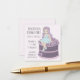 Bonita Princesa de Cartoon Púrpura com um lindo vestido azul de bebê sentado em cima de um bolo de aniversário floral. Personalize facilmente este convite com os seus próprios detalhes.