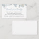 Um cartão de inserção de solicitação de livro para o chá de fraldas. Apresentando flores azuis de aquarela com poema: "UMA PEQUENA SOLICITAÇÃO, ESPERAMOS NÃO MUITO DURO POR FAVOR TRAZER UM LIVRO EM VEZ DE UM CARTÃO QUE ELES CHERARÃO O LIVRO, BEM AMADO OU MARCA NOVO POR FAVOR, ASSINE O DENTRO COM UMA MENSAGEM DE VOCÊ!"
