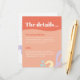 Um cartão de acompanhamento colorido e contemporâneo numa paleta de cores frescas, com espaço em ambos os lados para todos os seus detalhes essenciais.