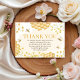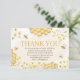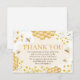 Envie uma nota de doce gratidão com este cartão de agradecimento de abelha melífera correspondente. Apresenta abelhas e gráficos de favo de mel em aquarela. Perfeito para agradecer os convidados após a celebração do chá de bebê com tema de abelhas. Papelaria elegante em amarelo e dourado.