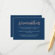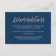 LEAH ・ Este cartão de acomodações azuis e rosa de ouro é perfeito para casamentos românticos e elegantes. A paixão é trazida pela letra fofa escrita manuscrita na textura "faux" da folha de ouro rosa, enquanto o fundo do marinho na moda combinado com o texto da cópia branca adiciona um toque de preciosidade. Esta coleção coordena-se bem com celebrações glamourosas, especialmente para eventos de interior, outono ou inverno.