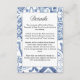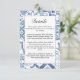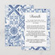 Este cartão de cerimônia de casamento é inspirado pelos azulejos azuis e brancos avistados em cidades mediterrânicas por toda a Espanha, Itália e Grécia.