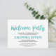 Este cartão de boas-vindas de caligrafia em aquarela é perfeito para um casamento com tema de praia tropical. O design divertido e cheio de energia apresenta uma linda fonte de caligrafia em aquarela com gradiente de verde-teal e azul-aqua. Personalize este cartão de detalhes com as informações da recepção e inclua também o endereço do site do seu casamento!