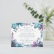 Cartão de acompanhamento com flores em aquarela escura em azul, azul-esverdeado e roxo.
