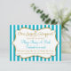 Uma turquesa bonito e um chá de fraldas de ouro "por favor traga um livro em vez de um cartão". Com o aqua e as listras brancas e o quadro de texto dourado brilhante e o texto dourado, esta inserção elegante do chá de fraldas é um vencedor.