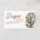 Coloque este cartão de inserção de rifa de fralda com o convite e certifique-se de que os pais não precisam comprar fraldas por muito tempo! Prepare-se para se virar para um chá de fraldas de vaqueira que se vira em rotação que captura o espírito do Oeste Selvagem! Este charmoso design apresenta uma corda divertida que tece suas cenas de rodeios e cowboys, ilustradas à mão, com cavalos galopantes e paisagens do deserto. Perfeito para qualquer chá de fraldas de menina, esta coleção inclui convites brancos, decoração deliciosa e favores divertidos, todos infundidos com um toque de talento ocidental. A partir do momento em que os convidados chegarem, sentirão que entraram numa aventura animada de rancho, celebrando a chegada do seu pequeno balde no estilo! Veja a coleção inteira para mais itens correspondentes!