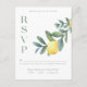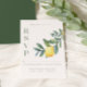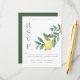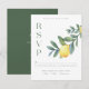 Cartão de confirmação de limão cítrico aquarela elegante. Desenho de folhagem de limão botânico com monograma no verso, tipografia moderna de confirmação e todos os detalhes, incluindo a escolha do jantar na frente.
