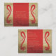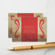 Este lindo cartão de confirmação de presença com dragão apresenta dois belos dragões nas laterais. Os cartões são vermelhos e dourados com escrita elegante. Os dragões podem parecer agressivos para outras sociedades, mas a cultura oriental vê os dragões como mágicos e os considera protetores dos inocentes contra espíritos malignos.