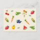 Ele apresenta um tema vibrante de mercado de produtores com frutas como morangos, mirtilos, cerejas e melancia, ao lado de legumes como cenouras, pimentões, milho e ervilhas, todos arranjados em uma encantadora exibição.