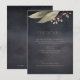 Folhas de verde botânico de cor d'água russa sobre fundo de cinza de índigo escura, cartas de detalhes elegantes e românticas, cartas de excelente ou cartas de direção para casamento rústico de vintage, casamento no campo e casamento de jardim à noite no outono e no inverno. Veja todas as peças correspondentes na coleção abaixo.