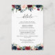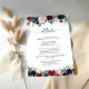 Cartão de Detalhes da Cerimônia de Casamento de Marinho e Borgonha. Este na moda e elegante Convite para Chá de Casamento apresenta uma linda aquarela pintada manualmente Burgundy e Marinho Floral. Localize itens correspondentes na Coleção Floral de Borgonha e Marinho.