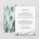 Este cartão de detalhes da montanha verde e dourada é perfeito para o seu elegante casamento boho na floresta da montanha. Com uma paisagem rústica em aquarela esmeralda verde pontilhada com árvores, pássaros e destaques em folha de ouro. É exatamente o que você está procurando para completar seu casamento moderno e único de destino.