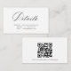Um cartão com código QR e letras de caligrafia preta para informações de casamento.
