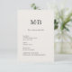 Um cartão de detalhes de casamento moderno minimalista projetado para elopamentos elegantes e celebrações íntimas. Este cartão de detalhes em estilo editorial limpo apresenta tipografia refinada, tons neutros suaves e um layout de monograma atemporal que combina perfeitamente com convites de casamento modernos e tudo-em-um.