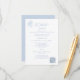 Detalhes do Cartão de Casamento French Blue com ilustração elegante de hortênsias e tipografia serifada atemporal — o envelope perfeito para compartilhar informações de acomodações, código de vestimenta e celebração com estilo.