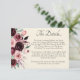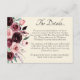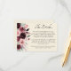 Este Cartão de Detalhes de Casamento das Flores Creme e Burgundy é a adição perfeita ao seu casamento com o tema botânico. Apresentando elegantes flores de burgundy em fundo creme, este cartão é ideal para casamentos de primavera e verão. A letra chic script adiciona um toque de sofisticação, enquanto a casa de campo e o campo sentem que vão se adequar a qualquer casamento rústico.