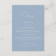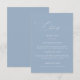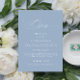 Este moderno e elegante convite para o casamento azul, com detalhes de cartão/ cartão, apresenta caligrafia delicada e tipografia clássica. É uma escolha excelente para o seu dia de casamento empoeirado. Personalize este cartão de detalhes adicionando informações sobre o seu casamento, como código de vestimenta, recepção, alojamento, site e muito mais. Todos os detalhes são editáveis e adequados para qualquer estação.