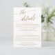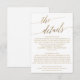 Esta elegante carta de detalhes de caligrafia em ouro é perfeita para um casamento outono. A design neutra apresenta uma carta minimalista decorada com a tipografia falsa de ouro romântica e caprichosa. Nota: Este design não apresenta folha de ouro real. É um gráfico de alta qualidade feito para se parecer com folhas de ouro.