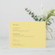 Compartilhe informações importantes do casamento de forma refinada e sofisticada com este elegante cartão de detalhes de casamento amarelo suave. Projetado para se coordenar perfeitamente com um conjunto de convites de casamento clássicos, este cartão apresenta um fundo amarelo cremoso e quente, tipografia serifada limpa e um layout editorial calmo.