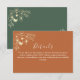 Compartilhe todos os detalhes essenciais do dia do casamento com este Cartão de Informação de Detalhes do Casamento com Flores em Verde Oliva e Terracota. Com flores boho inspiradas e cores terrosas, é perfeito para casamentos de outono ou celebrações com tema natural.
