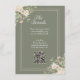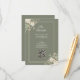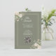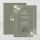 Forneça aos seus convidados tudo o que eles precisam saber usando este cartão de detalhes de casamento lindamente projetado. Com flores neutras suaves, um fundo verde sage romântico e uma borda dupla dourada, este inserto inclui espaço para o site do seu casamento e um código QR escaneável para acesso rápido às direções, informações da recepção, acomodações e muito mais. Um par perfeito para conjuntos de casamento clássicos ou com tema de jardim.
