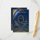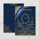Forneça as informações do seu dia de casamento com estilo usando este cartão de detalhes florais azuis e dourados elegantes. Com um fundo azul rico adornado com flores botânicas douradas luxuosas, este inserto personalizável é perfeito para compartilhar detalhes da cerimônia, notas de recepção e informações aos convidados, combinando com o conjunto de papelaria coordenada.