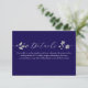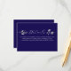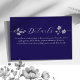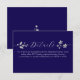 Adicione elegância e clareza ao seu conjunto de casamento com este cartão de detalhes azul real, adornado com sutil acento floral prateado e escrita graciosa. Perfeito para compartilhar informações de RSVP, acomodações, direções ou site com os convidados de forma refinada e coesa.