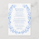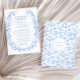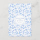Mergulhe na sofisticação clássica com este cartão de detalhes projetado para casamentos florais boêmios românticos azuis. Com uma delicada grinalda de elementos folclóricos azuis, este cartão oferece opções de personalização para tornar sua experiência única. Adicione os nomes da noiva e do noivo no verso para um toque distinto, elevando a elegância contemporânea geral da sua celebração de casamento.