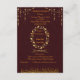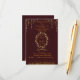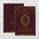 Forneça aos convidados informações importantes sobre o evento usando este elegante cartão de detalhes de casamento marrom e dourado. Projetado com um rico fundo burgundy e sotaques dourados refinados, este envelope luxuoso complementa temas de casamento formais e tradicionais. Perfeito para compartilhar detalhes da cerimônia, planos de recepção, acomodações e informações de viagem, este modelo personalizável completa um conjunto de papelaria de casamento coordenado.