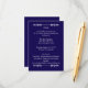 Projetado para combinar perfeitamente com o convite de casamento azul naval e branco, este cartão de inclusão moderno oferece uma maneira limpa e refinada de compartilhar detalhes importantes do casamento. Com tipografia em negrito, linhas mínimas e um layout atemporal, é perfeito para delinear acomodações, informações de recepção ou eventos de fim de semana com estilo sofisticado. Uma adição elegante e funcional a qualquer conjunto de casamento contemporâneo.