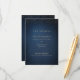 Brilho dourado falso em fundo azul-marinho escuro e monograma sofisticado do casal no verso, Simples e elegante. Ótimo cartão de detalhes de casamento para casamento clássico moderno e casamento formal.