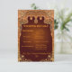 Complete seu convite de casamento com este cartão de envelope elegante vermelho e dourado, apresentando uma moldura de borda dourada luxuosa. Projetado para combinar perfeitamente com o convite principal, este cartão de detalhes fornece aos convidados informações importantes, como horário da cerimônia, detalhes da recepção, código de vestimenta e acomodação.